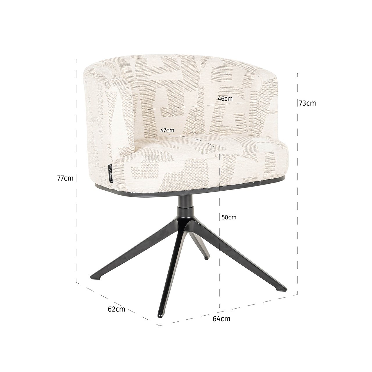 Ervaar ultiem comfort met de Draaifauteuil Cheyenne in Beige Graffic. Deze elegante stoel, gemaakt van hoogwaardig aluminium en luxe 100% polyester, voegt een vleugje stijl toe aan elke ruimte. Het moderne ontwerp met zwarte poten en een unieke grafische print zorgt voor een eigentijdse uitstraling. Met zijn compacte afmetingen past hij perfect in zowel woonkamers als werkruimtes. De stevige constructie met foam en ijzer biedt langdurige ondersteuning en comfort. Laat je omarmen door de Cheyenne draaifauteuil en creëer een sfeervolle en stijlvolle omgeving. Upgrade jouw interieur vandaag nog met deze onmisbare blikvanger.