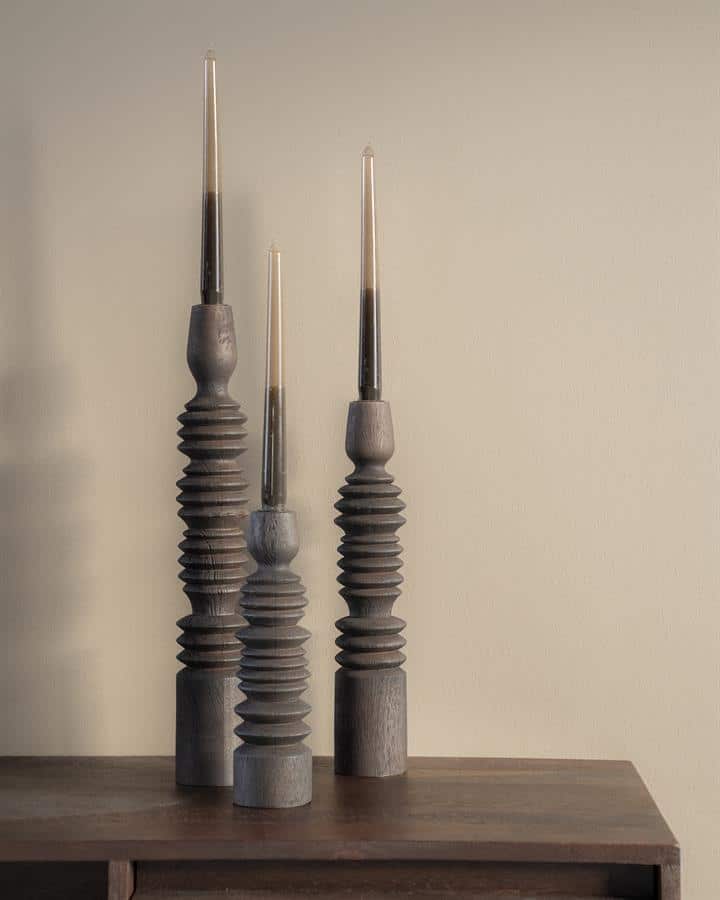 Geef je interieur een stijlvolle upgrade met de Totem – brown. Deze elegante houten sculpturen, onderdeel van de SCAN collectie, voegen een vleugje natuurlijke charme toe aan elke ruimte. Met hun warme bruine tinten en unieke vormen zijn ze perfect om een statement te maken op je dressoir of boekenplank. Verkrijgbaar in drie verschillende hoogtes, bieden ze veelzijdigheid in decoratie. Let op: de Totem is niet geschikt voor de vaatwasmachine, maar gemakkelijk met de hand schoon te maken. Voeg een tijdloos accent toe aan je interieur en laat je inspireren door de schoonheid van de natuur. Gewicht: 1,45 kg. Afmetingen: 7x7x45 cm, 7x7x36 cm, 7x7x26.5 cm.