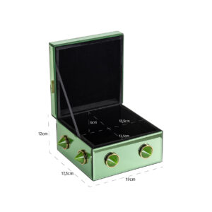 Ontdek de elegante Opbergbox Jelia groen uit de Richmond Decoration collectie. Met zijn verfijnde groene kleur en luxe afwerking van MDF, resin, spiegel en aluminium, voegt deze opbergbox een vleugje klasse toe aan elke ruimte. De zwarte voering biedt een stijlvol contrast en beschermt je waardevolle items. Met afmetingen van 12,0 x 20,0 x 18,0 cm is hij perfect voor het opbergen van sieraden of kleine accessoires. Laat je interieur stralen met dit unieke en praktische designstuk dat zowel functioneel als decoratief is. Ervaar de perfecte combinatie van stijl en organisatie met de Opbergbox Jelia groen.