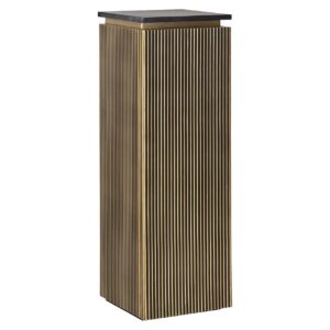 Voeg een vleugje luxe toe aan je interieur met de Kolom Ironville 1-deur in Black/gold. Deze elegante kolom combineert MDF, messing en zwart marmer voor een verfijnde uitstraling. Met afmetingen van 110 x 35 x 35 cm past hij perfect in elke hoek, terwijl het gewicht van 46,5 kg stabiliteit biedt. De Ironville-collectie staat bekend om haar stijlvolle en tijdloze design, waardoor deze kolom een echte blikvanger is. Ideaal om kunst of planten op te presenteren, en een must-have voor liefhebbers van moderne en klassieke interieurs. Maak je ruimte compleet met deze prachtige en functionele toevoeging.