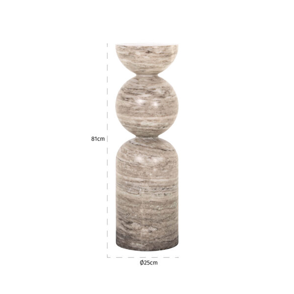Voeg een vleugje elegantie toe aan je interieur met de Pilaar Lewis in de kleur Sand. Deze prachtige creatie uit de Marble-collectie is vervaardigd uit hoogwaardig Morchana-marmer en straalt luxe en verfijning uit. Met een hoogte van 80 cm en een diameter van 25,5 cm is deze pilaar een indrukwekkende blikvanger. Het subtiele zandkleurige marmerpatroon voegt een natuurlijke, rustige sfeer toe aan elke ruimte. Of je het nu als sculpturaal element of als functioneel meubelstuk gebruikt, de Pilaar Lewis biedt veelzijdigheid en stijl. Perfect voor wie op zoek is naar een unieke en tijdloze aanvulling op hun interieur.