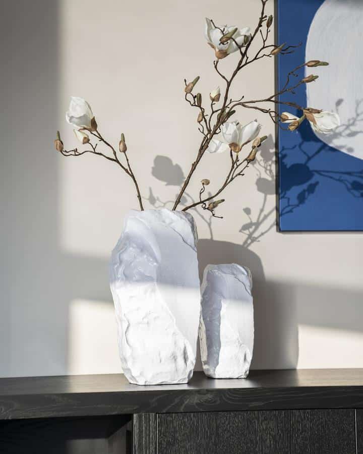 Breng een vleugje moderniteit in je interieur met de Pedra large vaas. Deze stijlvolle, witte vaas van aluminium uit de CONT collectie is een waar kunstwerk. Met zijn afmetingen van 21×17,5×43 cm en gecoate afwerking voegt hij een strakke en eigentijdse sfeer toe aan elke ruimte. Dankzij het duurzame materiaal en het eenvoudige onderhoud – schoonmaken met een zachte doek – blijft de Pedra large altijd in topconditie. Of je hem nu solo plaatst of combineert met andere stukken, deze vaas is een echte blikvanger. Voeg een vleugje verfijning toe aan je huis met de Pedra large en laat je interieur stralen.