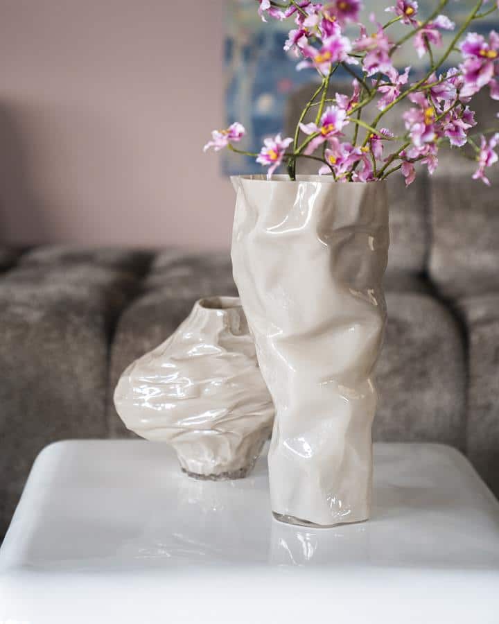 Ontdek de elegante charme van de Rias small – taupe vaas. Met zijn verfijnde taupe tint en unieke vorm voegt deze glazen vaas een vleugje verfijning toe aan elk interieur. De afmetingen van 26,5x17x22 cm maken het een subtiele maar opvallende toevoeging aan je woonkamer of eetkamer. Perfect voor een boeket bloemen of als een op zichzelf staand kunstwerk. Met de hand gewassen behoudt dit meesterwerk zijn glans en kleur. Laat je inspireren door de ELEG-collectie en creëer een stijlvolle sfeer in huis. Voeg de Rias small – taupe toe aan je interieur en geniet van tijdloze schoonheid.