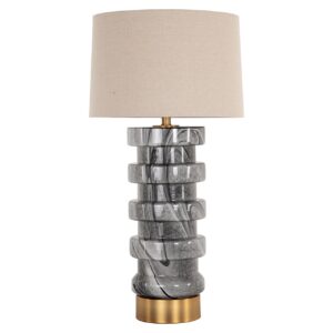 Geef je interieur een moderne uitstraling met de Tafellamp Jaylee in Black/white. Deze lamp uit de Richmond Decoration collectie combineert elegant glas en stevig ijzer voor een unieke stijl. Met een hoogte van 83 cm en een breedte van 43 cm is hij een indrukwekkende blikvanger op elke tafel. Het verfijnde contrast tussen zwart en wit zorgt voor een stijlvolle toevoeging aan je woonruimte. Of je nu een boek leest of een gezellige sfeer creëert, de Tafellamp Jaylee biedt de perfecte verlichting. Voeg een vleugje verfijning toe aan je huis met deze prachtige tafellamp.