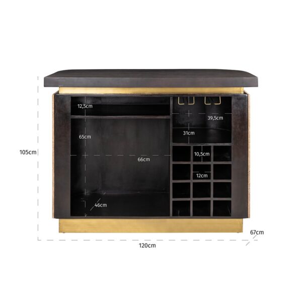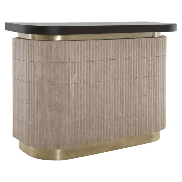 Ontdek de luxe van de Bar Martini (Brown), een verfijnde toevoeging aan je interieur. Deze stijlvolle bar uit de Richmond collectie combineert travertin en hout voor een rijke, natuurlijke uitstraling. Met afmetingen van 105 x 140 x 60 cm en een gewicht van 126 kg biedt het een robuuste, maar elegante structuur. De warme bruine tint voegt een vleugje klasse toe aan elke ruimte. Ideaal voor sfeervolle avonden met vrienden of een stijlvolle aanvulling op je woonkamer. Creëer een onvergetelijke ambiance met de Bar Martini en geniet van het ultieme comfort en design. Perfect voor liefhebbers van tijdloos interieur.