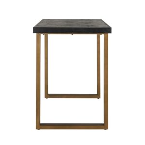 Ontdek de tijdloze elegantie van de Bartafel Blackbone brass. Deze unieke tafel uit de Blackbone-collectie combineert stijlvol zwart eiken met verfijnde brushed gold metalen poten. Met zijn royale afmetingen van 106 x 160 x 80 cm biedt deze bartafel voldoende ruimte voor gezellige bijeenkomsten. Het robuuste ontwerp en de black rustic kleur voegen een vleugje luxe toe aan elke ruimte. Of je nu een modern of klassiek interieur hebt, deze bartafel is een perfecte aanvulling. Geniet van kwaliteit en design in één met de Bartafel Blackbone brass, een statement voor elke woonkamer of keuken. Maak van elk diner of feestje een stijlvolle gelegenheid.
