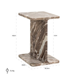 Ontdek de elegante Bijzettafel Benson in een warme bruine tint, vervaardigd uit luxueus Toronto marmer. Met zijn compacte afmetingen van 46 x 38 x 30,5 cm is deze tafel een stijlvolle toevoeging aan elke ruimte. Het verfijnde ontwerp straalt moderne klasse uit, terwijl de robuuste marmeren constructie duurzaamheid garandeert. Perfect als accentstuk naast uw bank of bed, voegt de Benson bijzettafel een vleugje verfijning toe aan uw interieur. Laat uw woonruimte stralen met de tijdloze schoonheid van marmer en geniet van de veelzijdigheid en stijl die de Benson collectie te bieden heeft. Voeg een vleugje luxe toe aan uw huis met deze prachtige bijzettafel.