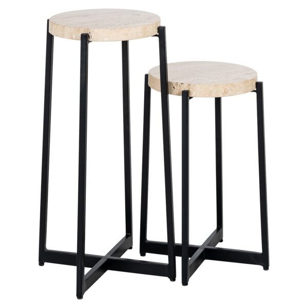Geef je interieur een vleugje elegantie met de Bijzettafel Dillinger set van 2 in Beige. Deze stijlvolle tafels combineren een strak ijzeren frame met een verfijnd travertin blad, perfect voor elke moderne woonkamer. De tafels uit de Marble collectie bieden niet alleen functionaliteit, maar ook een tijdloze uitstraling die moeiteloos in elk interieur past. Met een afmeting van 62,5 x 30,0 x 30,0 cm zijn ze ideaal voor het presenteren van decoratieve items of het neerzetten van je favoriete drankje. Ontdek de perfecte balans tussen design en gebruiksgemak met deze veelzijdige bijzettafelset. Voeg nu een vleugje luxe toe aan je woonruimte!