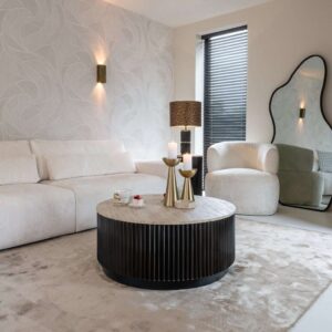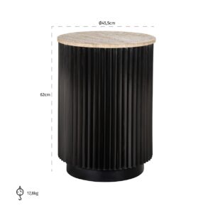 De Bijzettafel Hampton 45Ø in donkerbruin is een elegante toevoeging aan elke woonkamer. Met zijn verfijnde combinatie van travertin, metaal en MDF straalt deze tafel luxe en stijl uit. De tafel heeft een ideale hoogte van 62 cm en past perfect naast je bank of fauteuil. Het donkere bruine oppervlak voegt warmte toe aan je interieur, terwijl het strakke design een moderne touch biedt. Of je nu een kopje koffie neerzet of een mooi decoratief stuk, deze bijzettafel uit de Hampton-collectie is zowel functioneel als esthetisch aantrekkelijk. Haal tijdloze klasse in huis met de Bijzettafel Hampton.