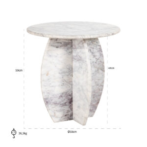 De Bijzettafel Holmes 50Ø in de kleur White is de perfecte aanvulling op jouw interieur. Gemaakt van hoogwaardig MDF en verfijnd white banswara marmer, straalt deze tafel elegantie en moderniteit uit. Met een diameter van 50 centimeter past hij moeiteloos in elke ruimte, van woonkamer tot slaapkamer. De tafel is niet alleen functioneel, maar ook een stijlvol statement. Laat je interieur stralen met de unieke charme van deze marmeren bijzettafel en ervaar de perfecte mix van design en duurzaamheid. Voeg een vleugje luxe toe aan je huis en geniet van de tijdloze schoonheid die de Holmes bijzettafel te bieden heeft.