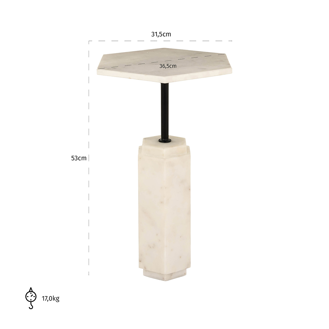 Voeg een vleugje verfijning toe aan je interieur met de Bijzettafel Lilitha. Deze elegante tafel uit de Richmond collectie combineert luxe marmer en robuust ijzer in een strakke black/white afwerking. Met afmetingen van 53,0 x 36,0 x 36,0 cm en een gewicht van 23,5 kg, biedt deze tafel stabiliteit en stijl in één. Perfect voor naast je bank of als opvallend accentstuk in elke kamer. De unieke vorm en hoogwaardige materialen maken de Bijzettafel Lilitha een tijdloze toevoeging aan je woonruimte. Kies voor de perfecte balans tussen design en functionaliteit en laat je interieur stralen.