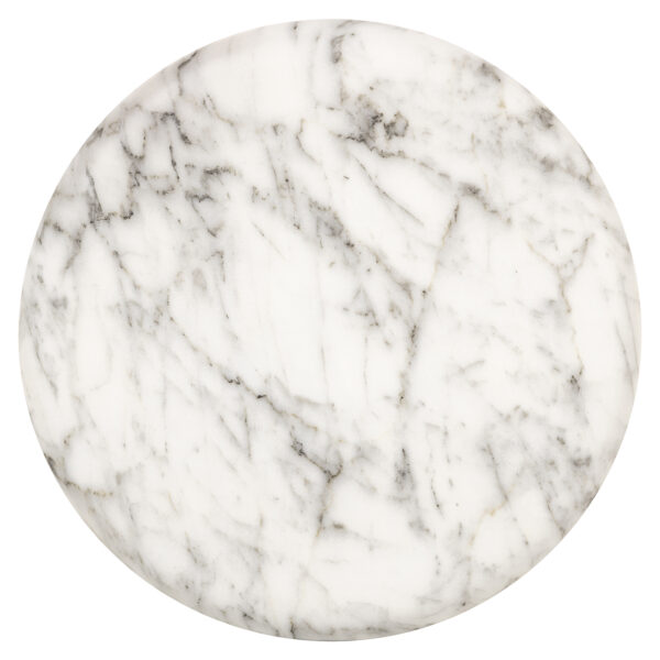 Voeg een vleugje elegantie toe aan je interieur met de Bijzettafel Lohan faux wit marmer. Deze stijlvolle tafel, uit de exclusieve Lohan-collectie, is een combinatie van travertijn, glasvezel en acryl, wat zorgt voor een duurzaam en verfijnd ontwerp. Met zijn afmetingen van 45,5 cm hoogte en 36 cm diameter past hij perfect in elke ruimte. Het witte marmerlook oppervlak straalt luxe uit en is een blikvanger in zowel klassieke als moderne interieurs. Of je nu een plek zoekt voor je favoriete boek of een kopje koffie, deze bijzettafel biedt functionaliteit met een esthetische flair. Maak je woonkamer compleet met de tijdloze charme van de Lohan bijzettafel.