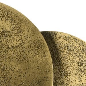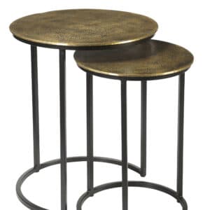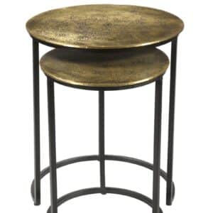 Transformeer je interieur met de Cast Iron Beau bijzettafels van Livingfurn! Deze set van 2 straalt luxe en stijl uit met robuuste bladen in antiek goud, rustend op elegante stalen onderstellen. Plaats Beau in je woonkamer voor een prachtig design en handig gebruik.