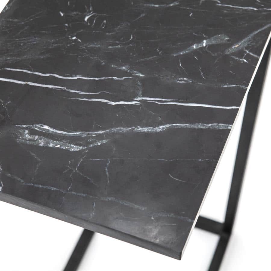 Ontdek de verfijnde elegantie van de Edge bijzettafel. Met zijn slanke zwarte afwerking van geverfd en gelakt marmer straalt deze tafel moderne luxe uit. De unieke aders in het marmer maken elk exemplaar bijzonder. Dankzij de stevige ijzeren constructie en compacte afmetingen van 40x27x65 cm is hij perfect voor elke ruimte. Onderhoud is eenvoudig: een droge doek volstaat. Voeg een vleugje stijl toe aan je interieur met deze tijdloze tafel, ideaal voor naast de bank of als accentstuk. De Edge is niet alleen een functioneel meubel, maar ook een kunstwerk op zich. Creëer een stijlvolle en uitnodigende sfeer in je huis.