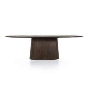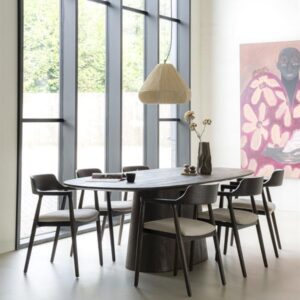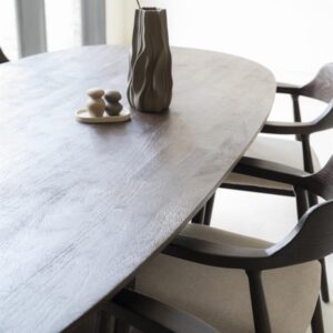 Ervaar de perfecte combinatie van elegantie en robuustheid met de Eettafel Aron ovaal 250×110. Deze prachtige tafel, vervaardigd uit massief mangohout, voegt een warme, natuurlijke uitstraling toe aan elke eetruimte. De gecoate afwerking in een rijke bruine tint zorgt voor een tijdloze allure en beschermt tegen dagelijkse slijtage. Met royale afmetingen van 250x110x76 cm biedt de tafel voldoende ruimte voor gezellige diners met vrienden en familie. De unieke ovale vorm nodigt uit tot lange gesprekken en maakt elke maaltijd bijzonder. Kies voor de Eettafel Aron en transformeer uw eetkamer in een stijlvolle ontmoetingsplek.
