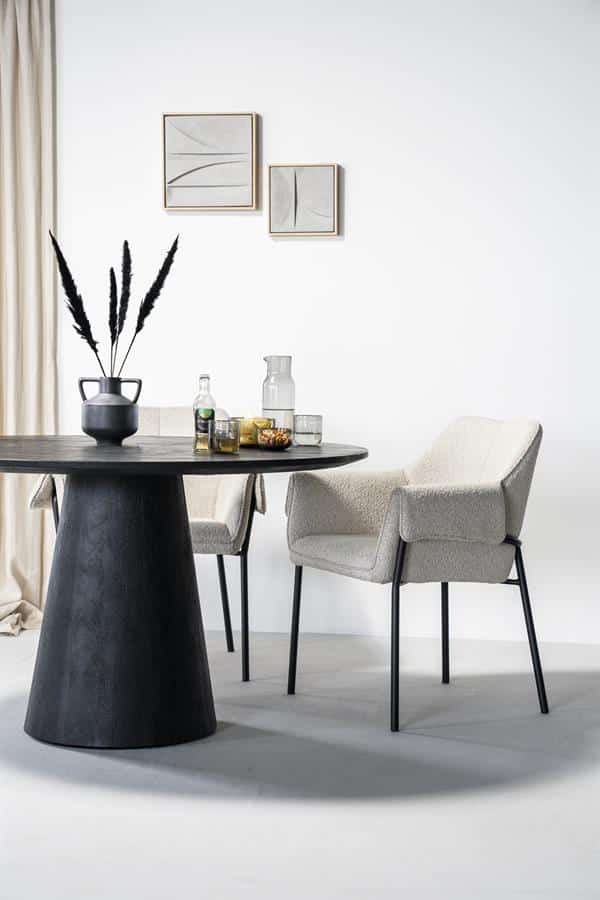 Ontdek de elegante Eettafel Aron rond 130 in stijlvol zwart. Gemaakt van hoogwaardig mango hout, biedt deze tafel niet alleen duurzaamheid maar ook een moderne uitstraling. De gecoate afwerking zorgt voor een verfijnde look die gemakkelijk te combineren is met diverse interieurstijlen. Met een diameter van 130 cm is deze tafel perfect voor intieme diners of gezellige bijeenkomsten. Zijn stevige constructie van 46,84 kg garandeert stabiliteit en langdurig gebruik. Voeg een vleugje verfijning toe aan uw eetkamer met de Eettafel Aron en ervaar de perfecte mix van functionaliteit en design.