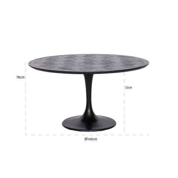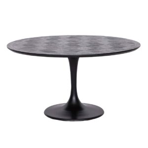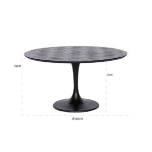 Ontdek de elegante Eettafel Blax 140Ø in stijlvol zwart. Deze ronde tafel, met een indrukwekkende diameter van 140 cm, biedt de perfecte balans tussen modern design en functionaliteit. Het tafelblad van eikenfineer straalt verfijning uit, terwijl de stevige ijzeren basis zorgt voor stabiliteit en duurzaamheid. De Blax-collectie staat bekend om zijn tijdloze esthetiek, waardoor deze tafel moeiteloos in elke eetkamer past. Of je nu een intieme familiediner organiseert of gasten ontvangt, de Eettafel Blax is de ideale keuze voor elke gelegenheid. Voeg een vleugje klasse toe aan je interieur met deze opvallende blikvanger. Ervaar de perfecte combinatie van stijl en gebruiksgemak met de Eettafel Blax.