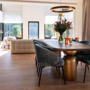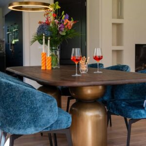 De Eettafel Cavo 230 (Brown) van de Richmond collectie is een ware blikvanger in uw interieur. Met zijn royale afmetingen van 78 x 230 cm biedt hij volop ruimte voor gezellige diners en bijeenkomsten. Het tafelblad van robuust acaciahout straalt warmte uit, terwijl de ijzeren poten met een brushed gold afwerking een vleugje luxe toevoegen. Deze combinatie van materialen zorgt voor een tijdloze en stijlvolle uitstraling. De bruine kleur past moeiteloos in diverse interieurstijlen, van modern tot klassiek. Met de Eettafel Cavo 230 haalt u niet alleen een functioneel meubelstuk in huis, maar ook een elegant pronkstuk dat de sfeer in uw eetkamer compleet maakt.