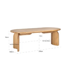 Ontdek de tijdloze elegantie van de Eettafel Fairmont Natural 270. Met zijn royale afmetingen van 76 x 270 x 100 cm biedt deze tafel voldoende ruimte voor gezellige diners met familie en vrienden. Gemaakt van hoogwaardig eikenhout in een natuurlijke kleur, straalt de tafel warmte en stijl uit. Het stevige ontwerp garandeert duurzaamheid en maakt het een perfecte aanvulling op elke eetkamerinterieur. Laat uw huis stralen met de Eettafel Fairmont, waar functionaliteit en esthetiek samenkomen. Voeg een vleugje luxe toe aan uw dagelijkse eetervaringen en geniet van onvergetelijke momenten rond deze prachtige tafel.