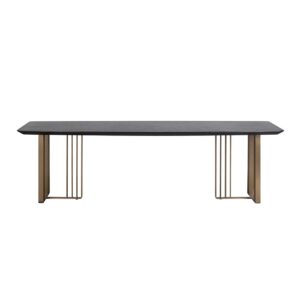 De Eettafel Maverick 220 in Charcoal is een meesterwerk uit de Alexander Jones-collectie. Met zijn royale afmetingen van 220 cm biedt hij voldoende ruimte voor gezellige diners en stijlvolle bijeenkomsten. De tafel combineert robuustheid met elegantie dankzij het gebruik van roestvrij staal, MDF en een verfijnde eikenfineer afwerking. De charcoal kleur voegt een moderne, verfijnde touch toe aan elk interieur. Deze tafel is niet alleen een functioneel meubelstuk, maar ook een statement van stijl en klasse. Geef je eetkamer een luxueuze uitstraling met de Eettafel Maverick 220 en geniet van ultieme kwaliteit en design. Perfect voor wie op zoek is naar een combinatie van duurzaamheid en esthetiek.