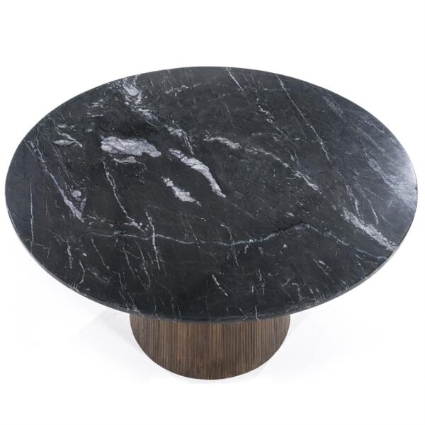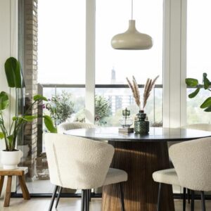 De Eettafel Maxim rond – 130×76 combineert stijl en duurzaamheid voor een luxe eetervaring. Gemaakt van hoogwaardig mango hout met een verfijnd zwart marmeren blad, straalt deze tafel elegantie uit in elke eetkamer. De gelakte afwerking garandeert een langdurige glans en bescherming tegen dagelijkse slijtage. Met een gewicht van 102,3 kg biedt deze tafel stabiliteit en robuustheid, ideaal voor gezellige diners met vrienden en familie. Laat de Eettafel Maxim jouw interieur verrijken en geniet van de perfecte balans tussen functionaliteit en design. Voeg een vleugje verfijning toe aan je huis met dit prachtige meubelstuk. Perfect voor liefhebbers van marmeren tafels die op zoek zijn naar iets bijzonders.
