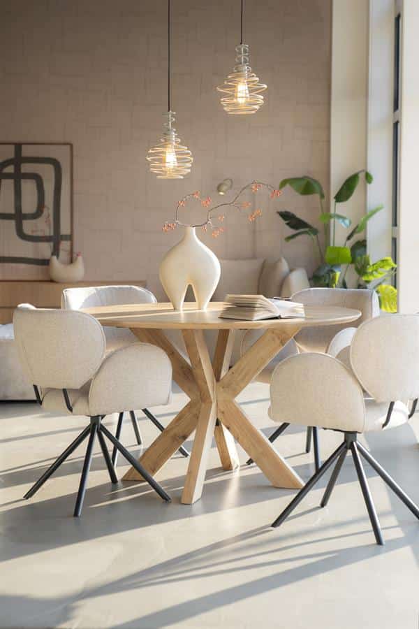 Ontdek de tijdloze elegantie van de Eettafel Nikki 130×76 in naturel. Gemaakt van hoogwaardig acaciahout, straalt deze tafel warmte en stijl uit in elke eetkamer. De natuurlijke lakafwerking benadrukt de unieke houtnerven, waardoor elke tafel een individueel kunstwerk wordt. Met royale afmetingen van 130x130x76 cm is er voldoende ruimte om gezellig te dineren met familie en vrienden. De stevige constructie en het doordachte ontwerp met een hoogte van 73,5 cm tussen de poten zorgen voor comfort en stabiliteit. Voeg een vleugje verfijning toe aan je interieur met de Eettafel Nikki, perfect om te mixen en matchen met jouw favoriete stoelen.