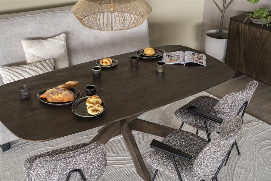 De Eettafel Nikki 200×100 in bruin is een prachtige toevoeging aan je interieur. Gemaakt van duurzaam mango hout, biedt deze tafel niet alleen stijl maar ook stevigheid. De gelakte afwerking benadrukt de rijke bruine tinten, waardoor elke maaltijd een luxe ervaring wordt. Met royale afmetingen van 200×100 cm is er voldoende ruimte voor gezellige diners met vrienden en familie. De hoogte onder de tafel van 73,5 cm zorgt voor optimaal comfort. Het Mix & Match-programma maakt het eenvoudig om de Nikki eettafel te combineren met diverse interieurstijlen. Voeg een vleugje elegantie en functionaliteit toe aan je eetkamer met deze indrukwekkende eettafel.