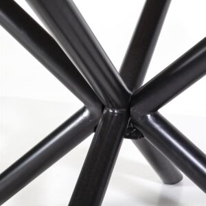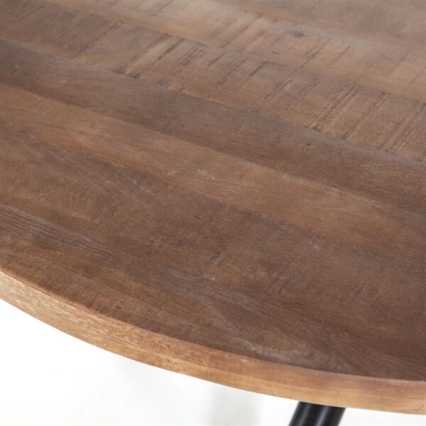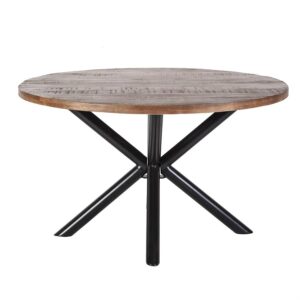 Transformeer je eetkamer met de stijlvolle ronde eettafel met kruispoot. Met een royale diameter van 150 cm biedt deze tafel voldoende ruimte voor gezellige diners. Gemaakt van hoogwaardig mango hout en stevig ijzer, straalt hij duurzaamheid en elegantie uit. De natuurlijke kleur en gelakte afwerking zorgen voor een warme uitstraling die in elk interieur past. De unieke kruispoot voegt een modern tintje toe en maakt deel uit van de veelzijdige Mix & Match NL serie. Dit meubelstuk, met een gewicht van 65,5 kg, is niet alleen een functionele toevoeging, maar ook een echte blikvanger. Verrijk je woonruimte met deze prachtige eettafel en geniet van onvergetelijke momenten aan tafel.
