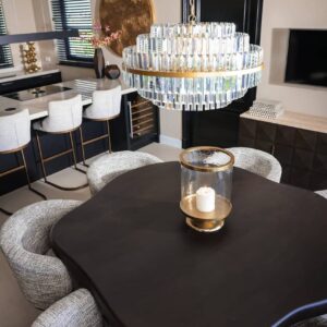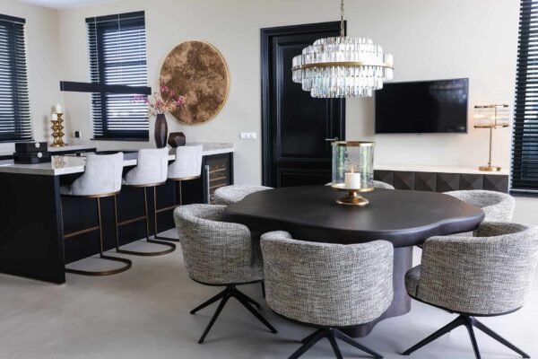 Ontdek de elegantie van de Eettafel Sherman Organisch 152×152 in stijlvol bruin. Deze unieke tafel, gemaakt van hoogwaardig acaciahout, voegt een vleugje natuurlijke schoonheid toe aan elke eetkamer. De organische vorm en rijke bruine tint creëren een warme en uitnodigende sfeer, perfect voor gezellige diners met familie en vrienden. Met een royale afmeting van 152×152 cm biedt deze tafel voldoende ruimte voor al uw culinaire creaties. De duurzaamheid van het acaciahout zorgt ervoor dat u jarenlang kunt genieten van dit prachtige meubelstuk. Breng stijl en functionaliteit samen met de Eettafel Sherman en maak van uw eetkamer een echte blikvanger.