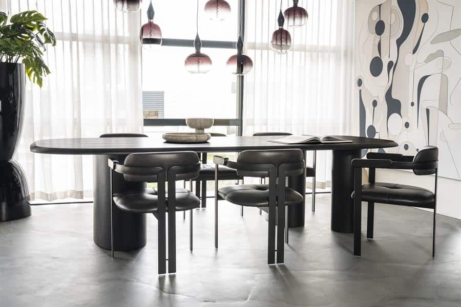 Ontdek de verfijnde elegantie van de Eettafel Walter – 300×120 cm. Deze luxueuze eiken tafel, afgewerkt met een zwarte lak, voegt een vleugje moderne klasse toe aan elke eetkamer. Met zijn royale afmetingen biedt hij voldoende ruimte voor gezellige diners met vrienden en familie. De solide constructie en het gewicht van 125 kg garanderen stabiliteit en duurzaamheid, terwijl de strakke lijnen en het eiken fineer een tijdloze uitstraling creëren. De perfecte combinatie van stijl en functionaliteit, Eettafel Walter is een investering in kwaliteit en design die jarenlang meegaat. Upgrade je interieur en ervaar ultiem comfort met deze prachtige tafel.