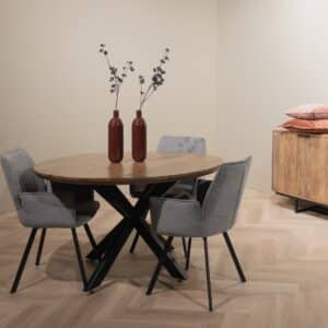 Ontdek de tijdloze stijl van de Jesper eetkamertafel van Livingfurn. Met een duurzaam hardhouten tafelblad in een naturel tint, straalt deze tafel elegantie uit. De gekruiste poot van gecoat staal voegt een modern accent toe, terwijl het minimalistische design naadloos past bij diverse woonstijlen. Een perfecte aanvulling voor een harmonieus interieur.