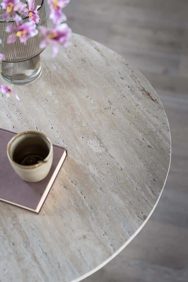 De Tafel Aime – 70×75 is een elegante toevoeging aan elk interieur. Gemaakt van hoogwaardig travertin, straalt deze tafel een tijdloze klasse uit. De beige kleur en de verfijnde nano-afwerking zorgen voor een warme en luxueuze uitstraling. Met zijn afmetingen van 70x70x75 cm past de tafel perfect in zowel kleine als grotere ruimtes. Het robuuste gewicht van 42,25 kg garandeert stabiliteit en duurzaamheid. Of je nu een gezellige eetruimte wilt creëren of een stijlvol accent in de woonkamer zoekt, de Tafel Aime biedt veelzijdigheid en esthetiek. Geef je huis een verfijnde touch met dit prachtige meubelstuk.