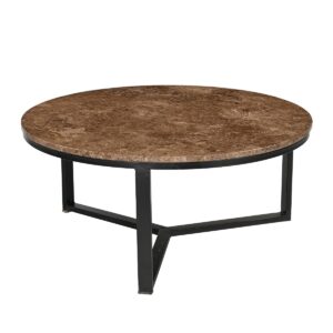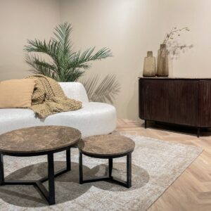De Senna salontafel van Livingfurn combineert moderniteit met natuurlijke schoonheid door haar ronde tafelblad van bruin emperador marmer, dat unieke texturen en diepte laat zien, gecombineerd met een zwart stalen onderstel. Het subtiele spel van kleuren en patronen op het blad maakt het een opvallend middelpunt in elke woonruimte. De Senna salontafel is verkrijgbaar in diverse maten.