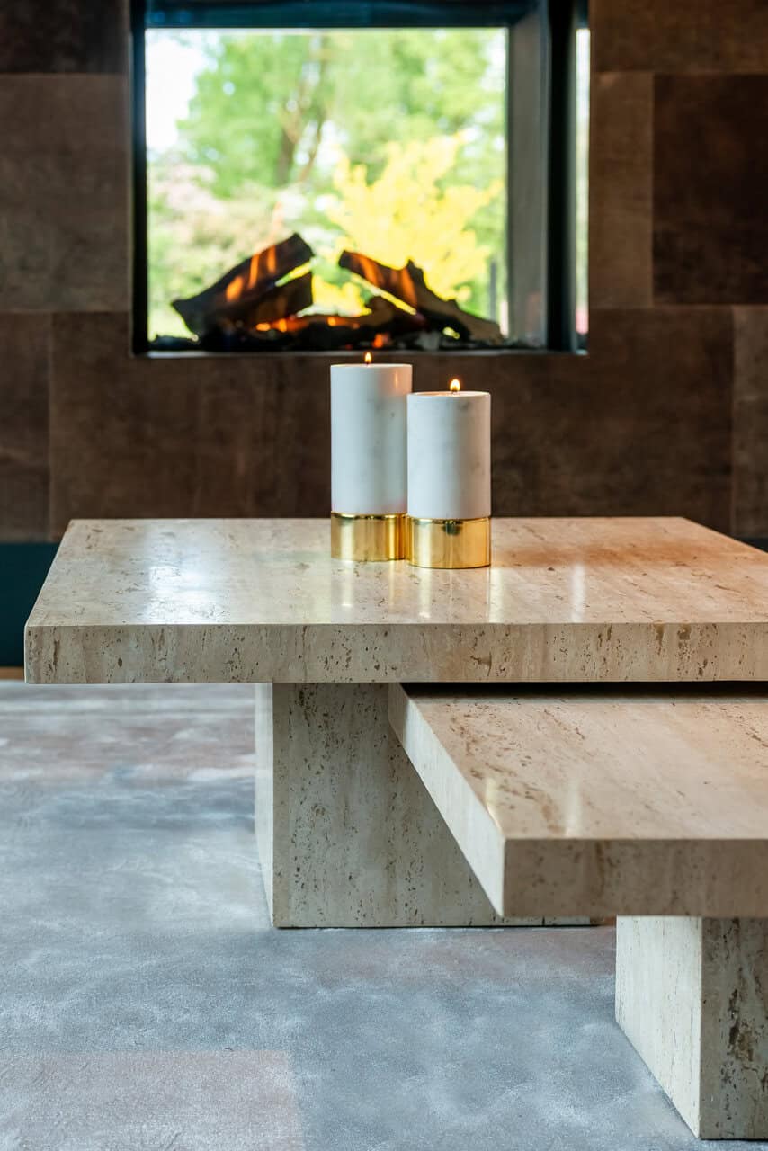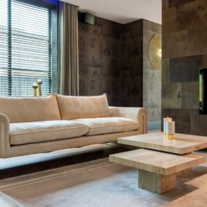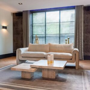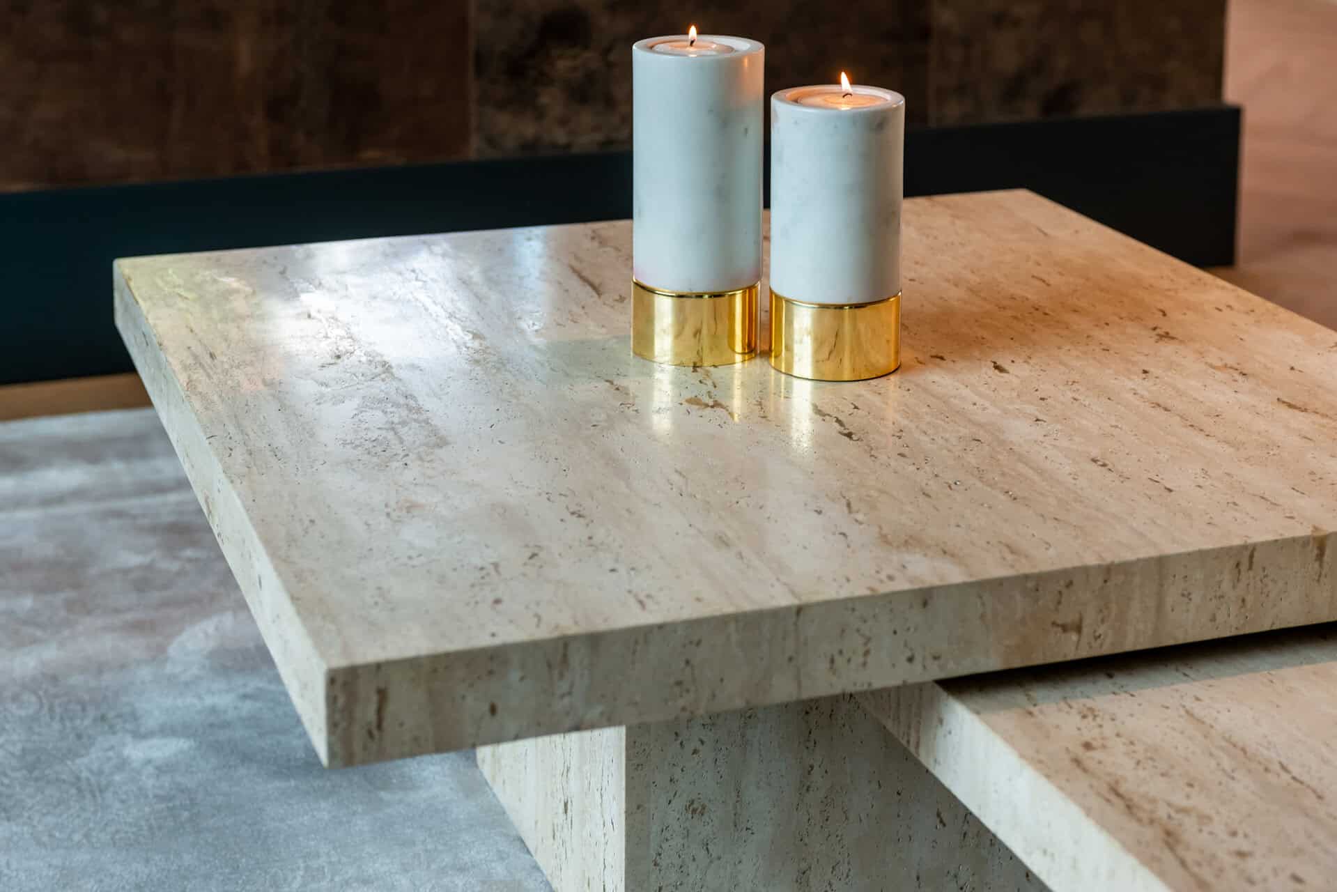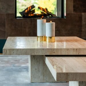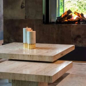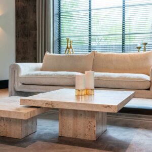 Breng verfijning in je woonkamer met de Salontafel La Cantera vierkant set van 2 in elegant beige. Deze prachtige tafels zijn vervaardigd uit hoogwaardig travertin en plywood, wat zorgt voor een tijdloze uitstraling en duurzaamheid. Met royale afmetingen van 35 x 80 x 80 cm bieden ze voldoende ruimte voor decoratieve items of een gezellige avond met vrienden. De warme beige tint complimenteert elke interieurstijl en creëert een uitnodigende sfeer. De unieke set van twee tafels voegt een speels element toe en biedt flexibiliteit in plaatsing. Geef jouw leefruimte een luxe upgrade met deze stijlvolle salontafelset en geniet van tijdloze schoonheid en functionaliteit.