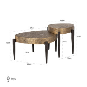Voeg een vleugje luxe toe aan je interieur met de Salontafel Marquee set van 2 in black/gold. Deze prachtige tafels uit de Chandon-collectie combineren stijl en functionaliteit. Het gebruik van hoogwaardig MDF, plywood en ijzer zorgt voor een stevige constructie, terwijl de elegante zwart-gouden afwerking elke kamer een verfijnde uitstraling geeft. Met afmetingen van 42 x 68 x 89 cm zijn ze perfect geschikt voor zowel grote als kleine ruimtes. Ideaal voor het presenteren van je favoriete decorstukken of als praktische bijzettafel tijdens gezellige avonden. Geef je woonkamer de upgrade die het verdient met deze stijlvolle salontafelset.