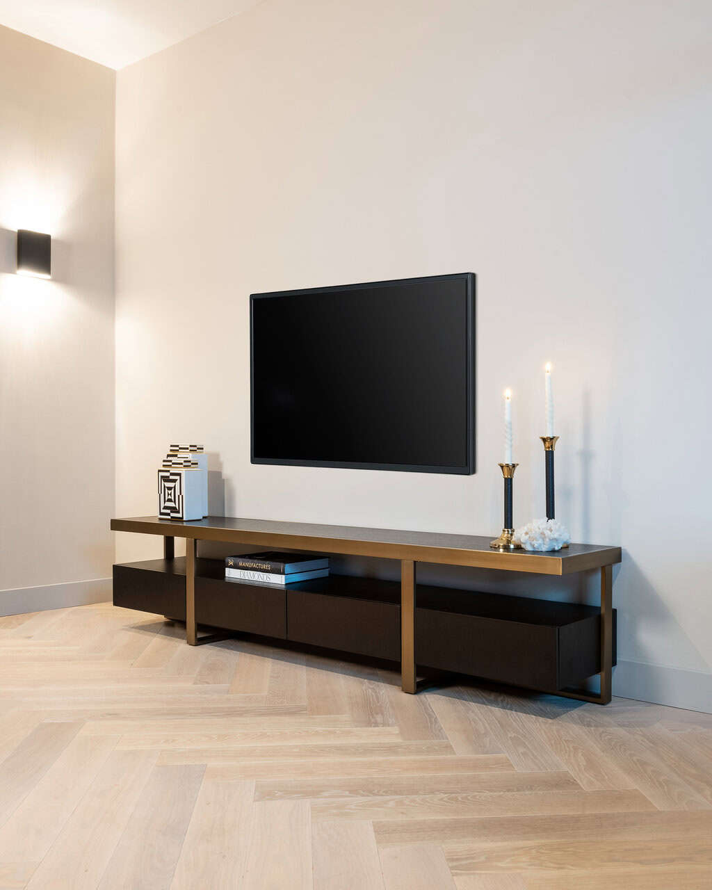 Ontdek het TV Dressoir Diddley in Charcoal, een meesterwerk uit de Alexander Jones collectie. Dit stijlvolle meubelstuk combineert elegantie en functionaliteit, met royale afmetingen van 49 x 220 x 40 cm. Gemaakt van hoogwaardig MDF, roestvrij staal en eikenfineer, straalt het een moderne charme uit die naadloos in elk interieur past. De rijke charcoal kleur voegt een vleugje verfijning toe, terwijl het robuuste ontwerp zorgt voor duurzaamheid. Perfect voor het organiseren van je entertainmentruimte met stijl en gemak. Geef je woonkamer een tijdloze upgrade met dit unieke dressoir dat zowel esthetisch als praktisch is. Creëer de perfecte balans tussen design en functionaliteit.