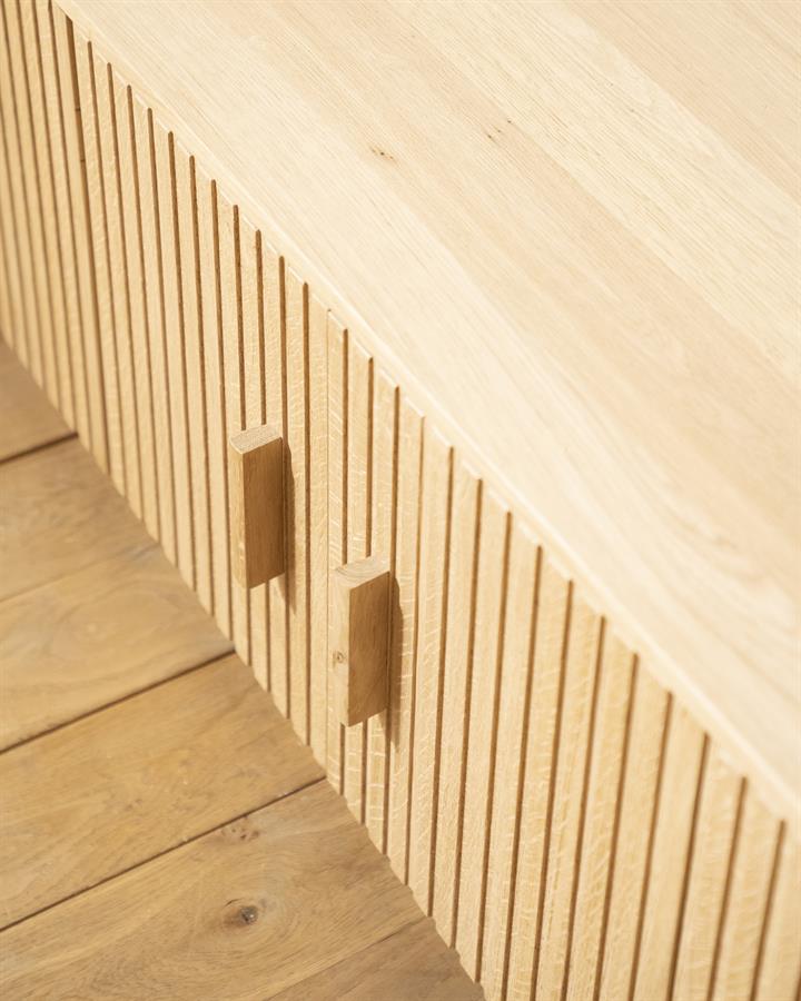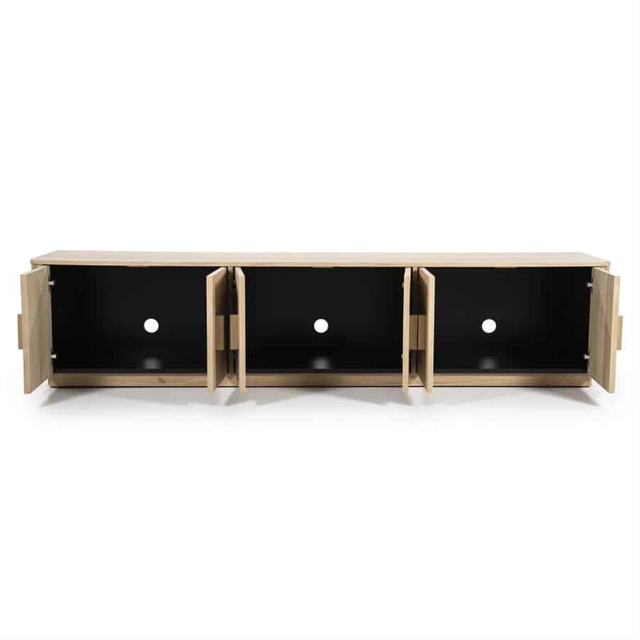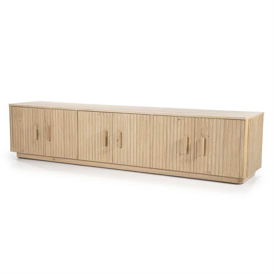 Geef je woonkamer een stijlvolle upgrade met het Tv meubel Rosenborg. Gemaakt van hoogwaardig eiken hout en eiken fineer, straalt dit meubel natuurlijke elegantie uit. Met royale afmetingen van 223,8×45,4×50 cm biedt het voldoende ruimte voor al je entertainmentapparatuur. De stevige constructie van 67,9 kg zorgt voor stabiliteit, terwijl het subtiele ontwerp perfect in elk interieur past. Het Rosenborg programma combineert functionaliteit met esthetiek, waardoor het een must-have is voor elke moderne woning. Creëer een warme en uitnodigende sfeer en geniet van avonden vol entertainment met dit prachtige meubelstuk.