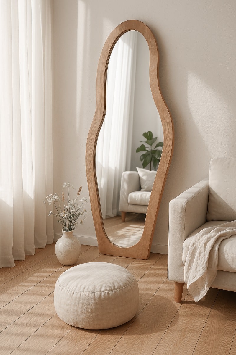De vloerspiegel Brix Olivia is een stijlvolle blikvanger met een verfijnde, organische vorm. Vervaardigd uit hoogwaardige materialen, combineert deze spiegel functionaliteit met een elegant design. Verkrijgbaar in de kleuren Almond en Off White, past de Brix Olivia perfect in diverse interieurstijlen.