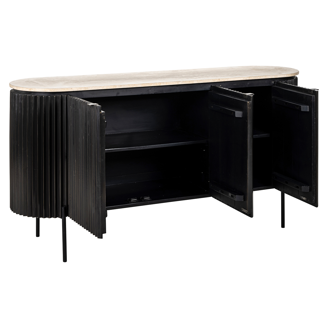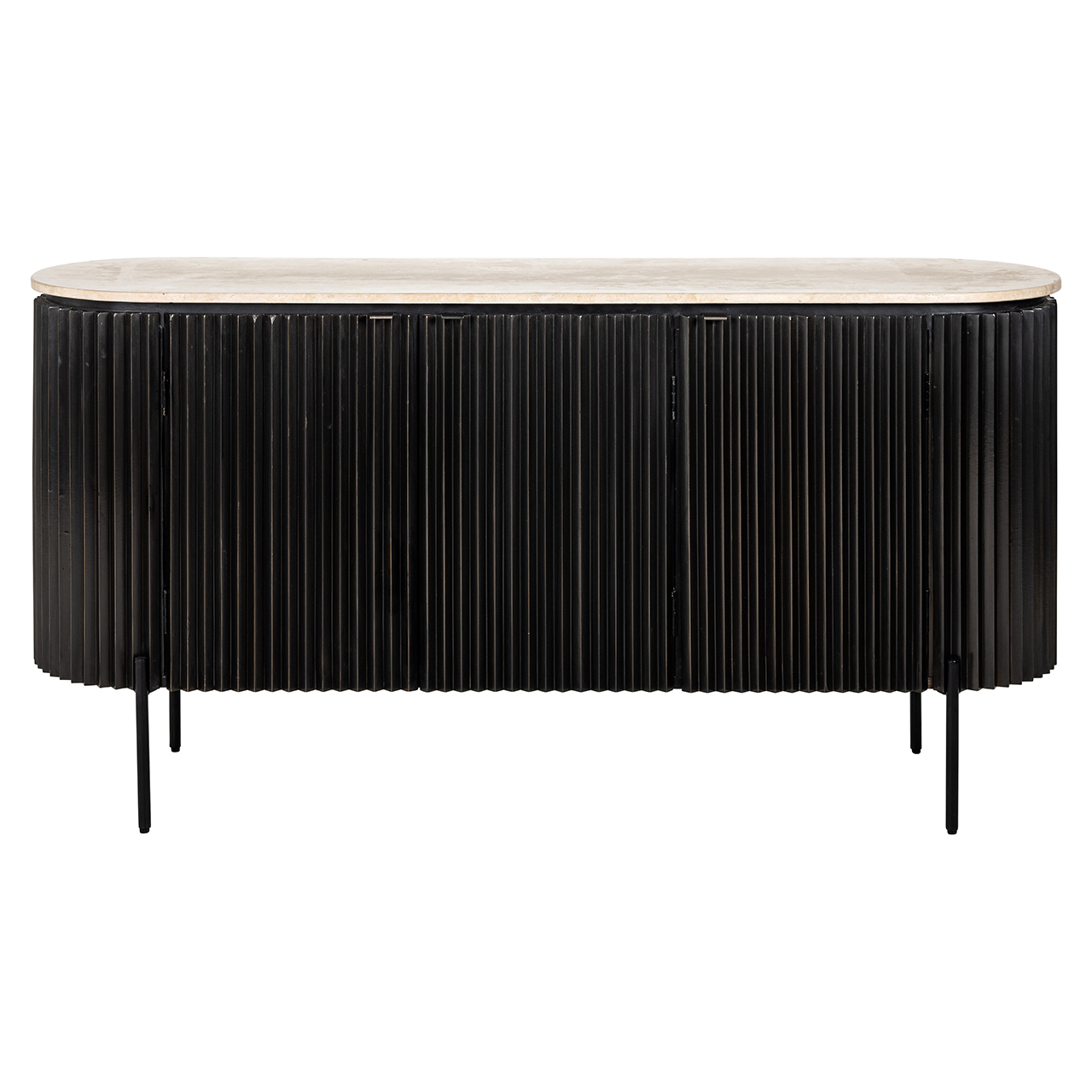 Transformeer je interieur met het stijlvolle Dressoir Hampton in dark brown. Dit elegante meubelstuk, gemaakt van hoogwaardige materialen zoals travertine, MDF en metaal, combineert functionaliteit met een verfijnde uitstraling. Met royale afmetingen van 82,0 x 160,5 x 40,0 cm biedt het voldoende opbergruimte, terwijl het slanke ontwerp perfect in elke ruimte past. De warme, donkere tint zorgt voor een tijdloze elegantie, waardoor het dressoir een blikvanger is in zowel klassieke als moderne interieurs. Of je nu op zoek bent naar extra opbergruimte of een statement piece, het Dressoir Hampton voegt direct karakter en stijl toe aan je huis. Maak je interieur compleet met dit veelzijdige en duurzame dressoir.