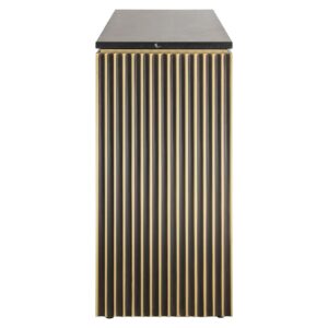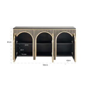 Het Dressoir Les Arcs 3-deurs in Brushed Gold is een meesterwerk van verfijning en elegantie. Met zijn afmetingen van 81 x 160 x 40 cm biedt dit dressoir niet alleen royale opbergruimte, maar ook een statement in elke ruimte. De combinatie van MDF, brass cladding en zwart marmer zorgt voor een luxueuze uitstraling, terwijl de zwarte voering een verfijnde afwerking biedt. Perfect voor wie op zoek is naar een stijlvol en functioneel meubelstuk dat moeiteloos opgaat in zowel moderne als klassieke interieurs. Het unieke ontwerp van de Les Arcs-collectie voegt een vleugje glamour toe, waardoor dit dressoir de ideale keuze is voor elke interieurliefhebber.
