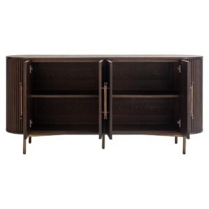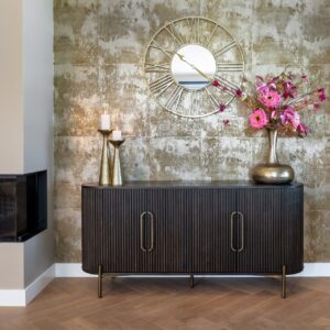 Voeg een vleugje elegantie toe aan je interieur met het Dressoir Luxor 4-deurs in stijlvol bruin. Dit meesterwerk uit de Luxor-collectie combineert functionaliteit met verfijning. Gemaakt van stevig ijzer, multiplex en eikenhout, biedt het een duurzame en robuuste opbergoplossing. De luxueuze afwerking in geborsteld goud maakt dit dressoir tot een echte blikvanger. Met royale afmetingen van 85 x 180 x 50,5 cm en een gewicht van 66 kg, is er genoeg ruimte voor al je waardevolle spullen. Het Dressoir Luxor is de perfecte balans tussen design en functionaliteit, en voegt moeiteloos een vleugje klasse toe aan elke kamer.