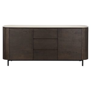 Ontdek de tijdloze elegantie van het Dressoir Ritz 2-deurs 3-laden in Brown. Met zijn verfijnde afwerking en robuuste constructie van eikenfineer, keramiek, MDF en gerecycled hout, is dit dressoir een ware blikvanger. Het ontwerp combineert functionaliteit met stijl door ruime opbergladen en deuren die al uw essentials netjes opbergen. De warme bruine tint voegt een vleugje luxe toe aan elke ruimte, terwijl de travertine keramische details een eigentijdse twist geven. Perfect voor zowel moderne als klassieke interieurs, biedt het Dressoir Ritz de perfecte balans tussen vorm en functie. Voeg dit pronkstuk toe aan je interieur en ervaar een wereld van stijl en gemak.