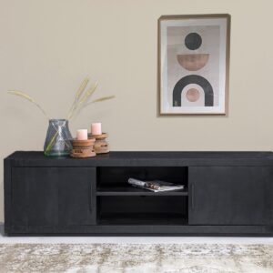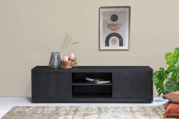 Ontdek deze kast uit de Jaxx Collectie van Livingfurn, expressief in ontwerp en krachtig in zwart. Gemaakt van mangohout met een zwarte afwerking, onderscheidt Jaxx zich door zijn strakke vorm en stijlvolle uitstraling. Prachtig te integreren in elk interieur, vooral in combinatie met natuurlijke kleuren en materialen. Combineer moeiteloos met de Kala Collectie voor een complete look.