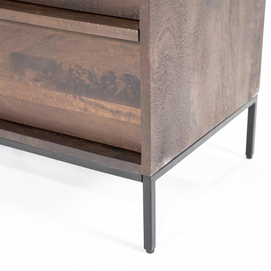 Ontdek de perfecte balans tussen stijl en functionaliteit met het Kabinet Jimmy – 3drs. 2 laden. Dit prachtige meubelstuk, vervaardigd uit duurzaam mango hout en robuust metaal, voegt een vleugje elegantie toe aan elke ruimte. Met een afmeting van 90x40x180 cm biedt het ruime opbergmogelijkheden zonder concessies te doen aan esthetiek. De warme bruine coating accentueert de natuurlijke houtnerf, terwijl de stevige constructie een lange levensduur garandeert. Ideaal voor wie op zoek is naar een stijlvolle en praktische oplossing voor hun interieur. Voeg een uniek en verfijnd element toe aan uw woning met het veelzijdige Kabinet Jimmy.