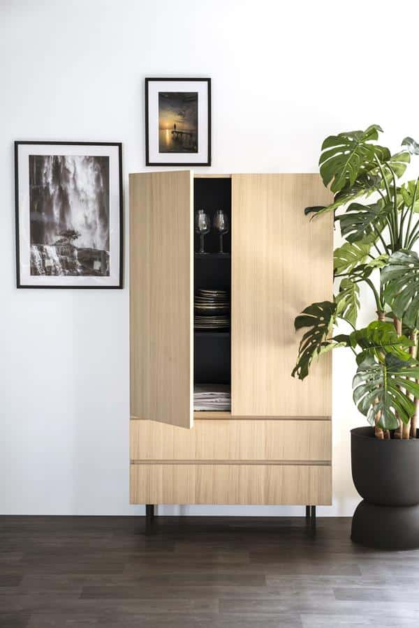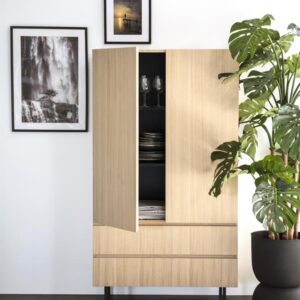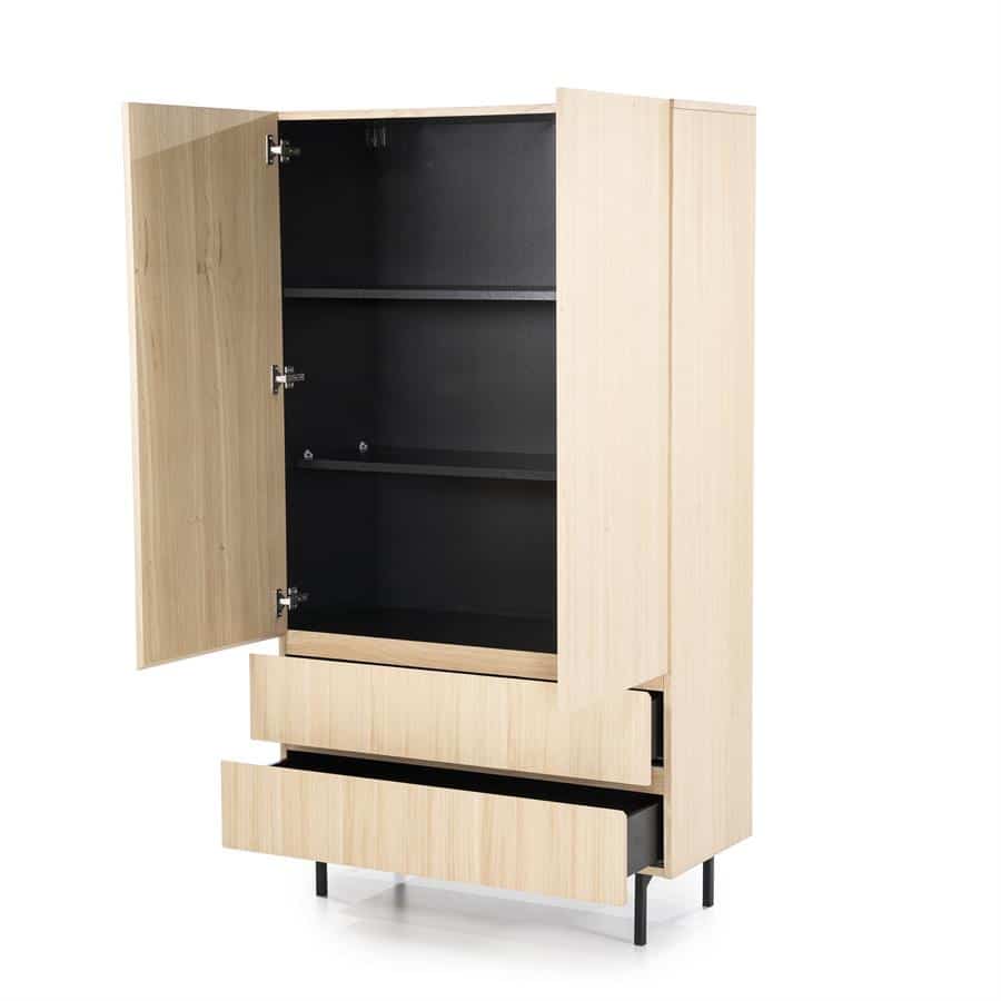 Ontdek de elegante eenvoud van Kabinet Thomas 95×170 cm. Dit prachtige meubelstuk combineert tijdloos eiken fineer met stevig metaal, perfect voor elke moderne woonruimte. De natuurlijke kleur en strakke lijnen maken het een veelzijdige aanvulling op jouw interieur. Met ruime afmetingen van 95×42,5×170 cm biedt dit kabinet voldoende opbergruimte voor al je essentials, terwijl het met zijn netto gewicht van 73,26 kg stevig en duurzaam is. Of je nu boeken, servies of decoratieve items wilt opbergen, Kabinet Thomas past zich moeiteloos aan jouw wensen aan. Geef je huis een stijlvolle upgrade met dit veelzijdige en functionele meubelstuk.