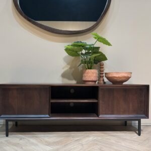 De Ravenstein Brown 150cm is de perfecte combinatie van stijl en functionaliteit. Gemaakt van hoogwaardig mangohout en stevig gecoat staal, biedt dit dressoir niet alleen duurzaamheid maar ook een elegante uitstraling. Met zijn afgelakte bruine afwerking straalt het warmte uit en voegt het een vleugje luxe toe aan elke ruimte. De rechthoekige vorm en royale afmetingen (150 cm hoog, 40 cm lang, 50 cm breed) maken het ideaal voor zowel opbergruimte als een stijlvolle aanvulling op uw interieur. Onderhoud is eenvoudig met de Wood Care Kit Matt Polish, zodat u langdurig kunt genieten van zijn schoonheid. Verbeter uw woonruimte met de Ravenstein Brown 150cm.