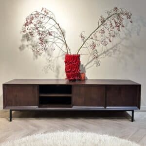 Geef je interieur een stijlvolle upgrade met de Ravenstein Brown 180cm. Dit elegante dressoir combineert de warme uitstraling van duurzaam mangohout met de strakke lijnen van gecoat staal. Met zijn royale afmetingen van 180 cm hoogte, 40 cm lengte en 50 cm breedte biedt het voldoende opbergruimte zonder te domineren. De afgelakte afwerking zorgt voor een luxe uitstraling, terwijl de rechthoekige vorm een tijdloze elegantie uitstraalt. Perfect te onderhouden met de Wood Care Kit Matt Polish, blijft dit meubelstuk er altijd als nieuw uitzien. Voeg de Ravenstein Brown toe aan je interieur en geniet van de perfecte balans tussen functionaliteit en design.