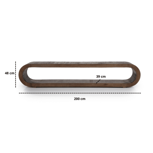 Met een breedte van 200 cm en een diepte van 30 cm biedt Elora royaal plaats voor je televisie, audioapparatuur en decoratieve objecten. Dankzij de open vakken heb je eenvoudig toegang tot je apparaten en kabels, terwijl het robuuste mangohout een maximale draagkracht van 31,7 kg garandeert.