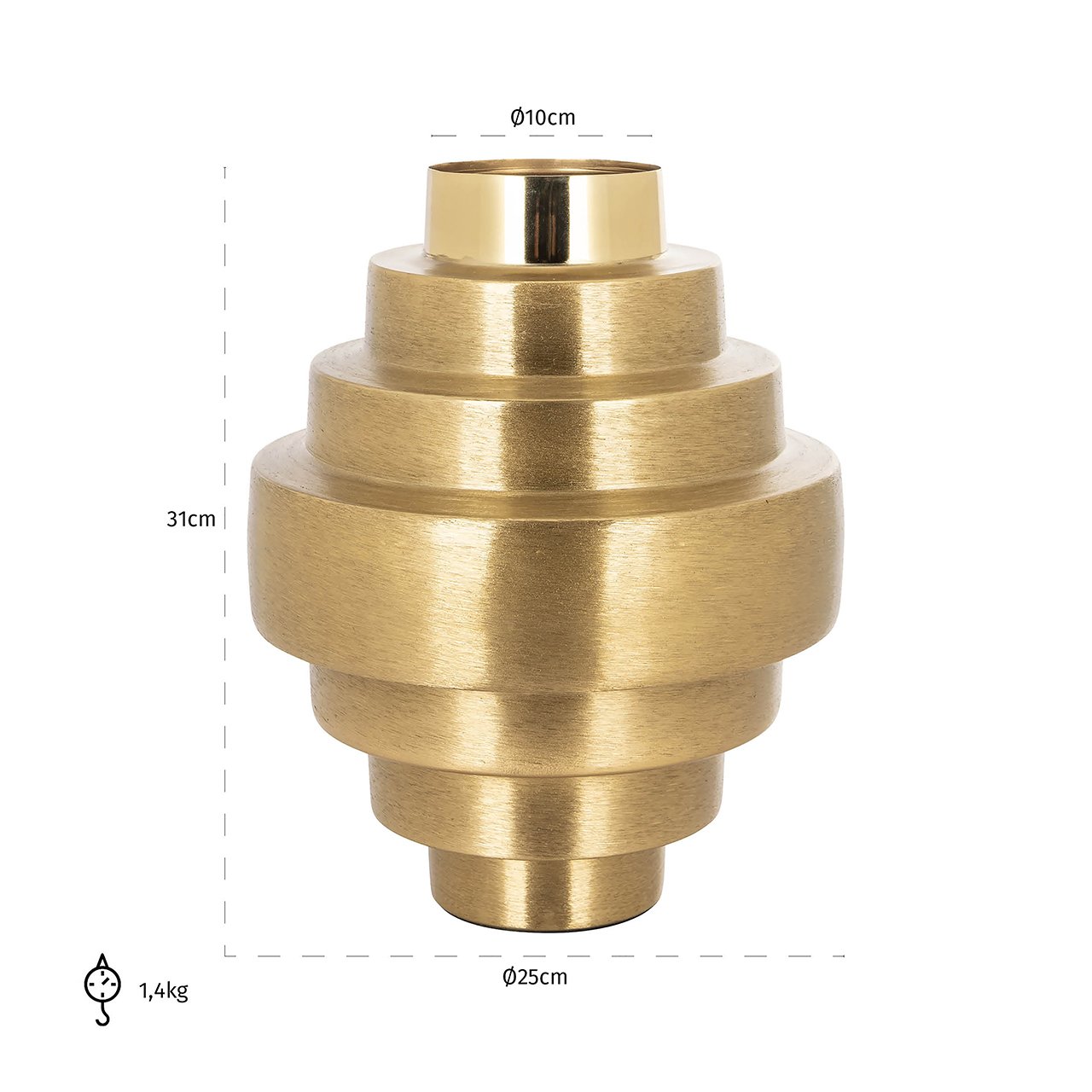 Voeg een vleugje luxe toe aan je interieur met de Vaas Akelei goud. Deze elegante vaas uit de Richmond Decoration collectie trekt alle aandacht dankzij zijn verfijnde gouden afwerking en geometrische vorm. Gemaakt van stevig ijzer met een messingen laag, combineert hij duurzaamheid met stijl. Met afmetingen van 31 x 25 x 25 cm is deze vaas perfect voor zowel grotere bloemstukken als een op zichzelf staande decoratie. Laat je ruimte stralen en creëer een verfijnde ambiance met deze schitterende gouden vaas. Een tijdloos stuk dat elke kamer een elegante uitstraling geeft.