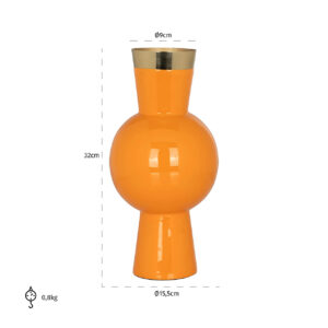 Geef je interieur een opvallende twist met de Vaas Clem uit de Richmond Decoration collectie. Deze unieke vaas, gemaakt van duurzaam ijzer met een messing en emaille afwerking, combineert stoere materialen met een verfijnde uitstraling. Met zijn afmetingen van 32 cm hoog en een diameter van 15,5 cm is hij perfect om als eyecatcher op tafel of in de vensterbank te plaatsen. Het gedurfde ontwerp en de levendige kleur maken elke ruimte direct levendiger. Perfect voor een modern interieur, maar ook als statement piece in een klassieke setting. Voeg de Vaas Clem toe aan je decor en ervaar hoe eenvoudig stijlvol wonen kan zijn.